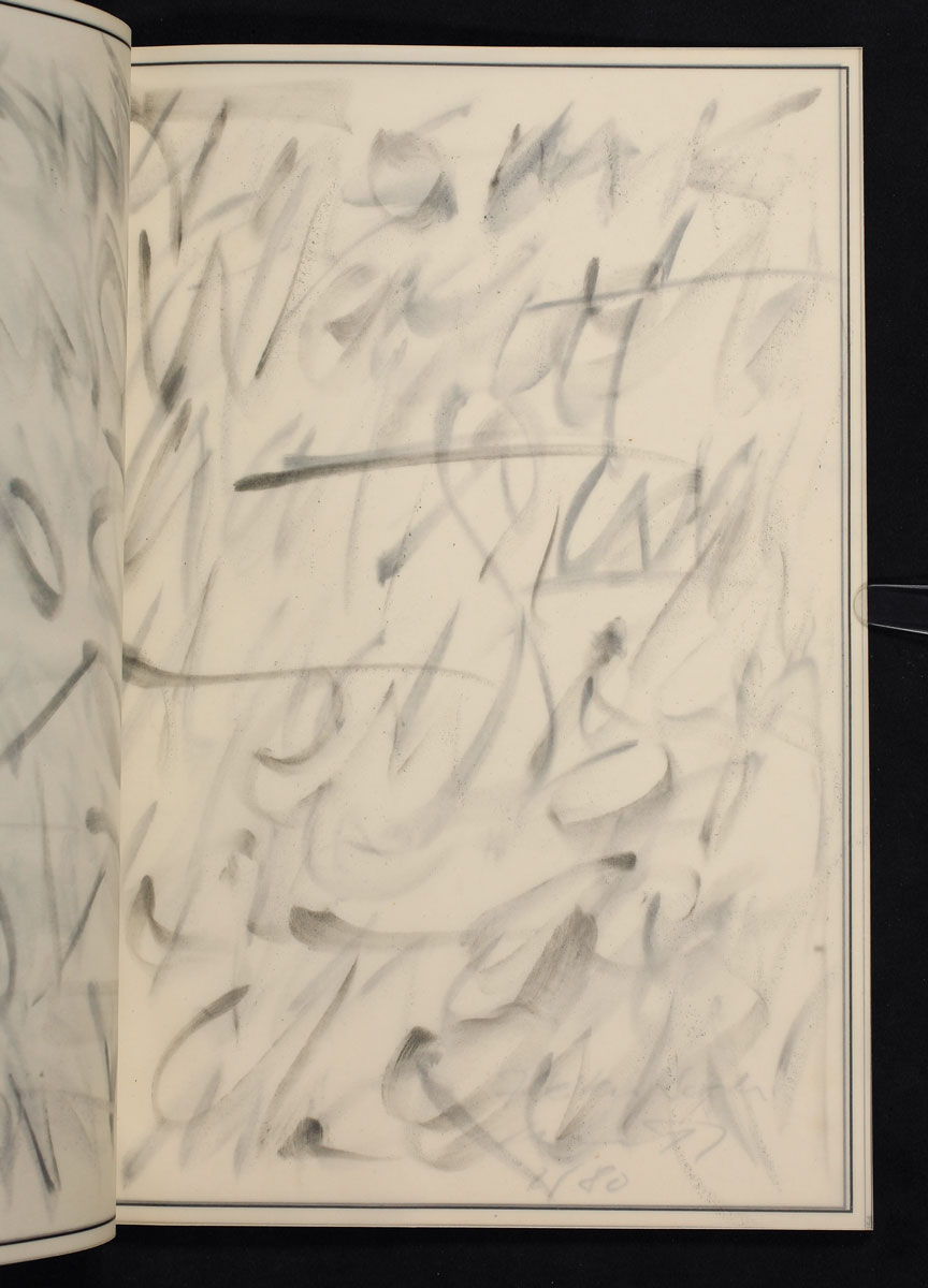 The etchings / images reference the art of Giorgio Morandi (1890-1964) supplemented by book objects taken from the artist’s library. The lyrics were written in response and were placed into the picture areas as a truly singular creative collaboration between artist and poet.