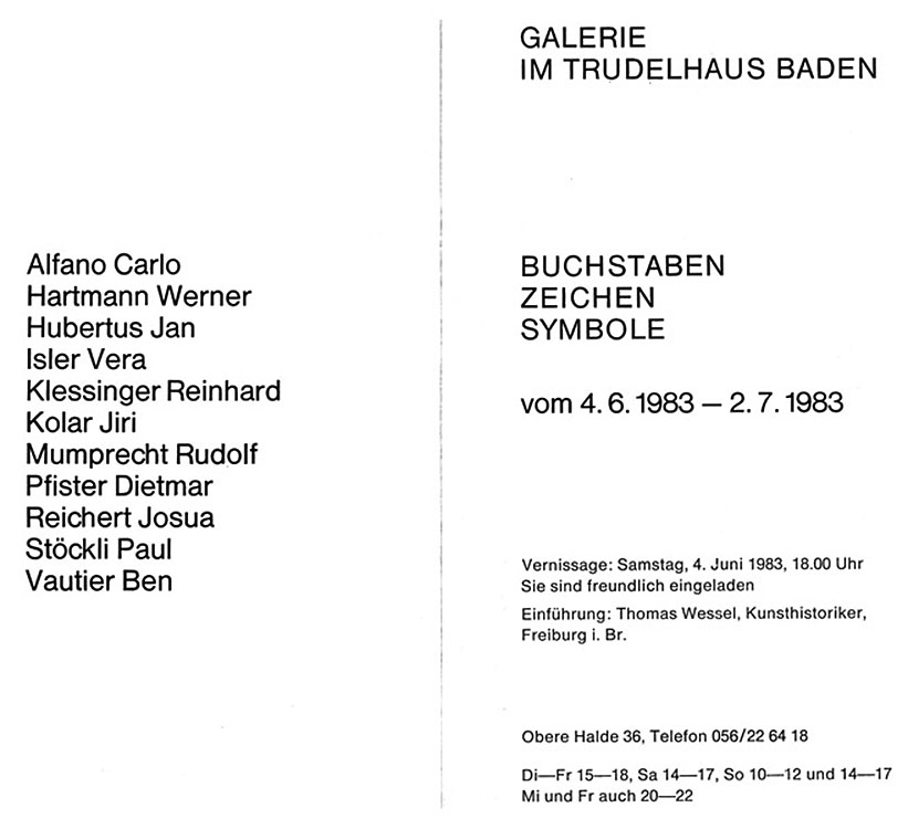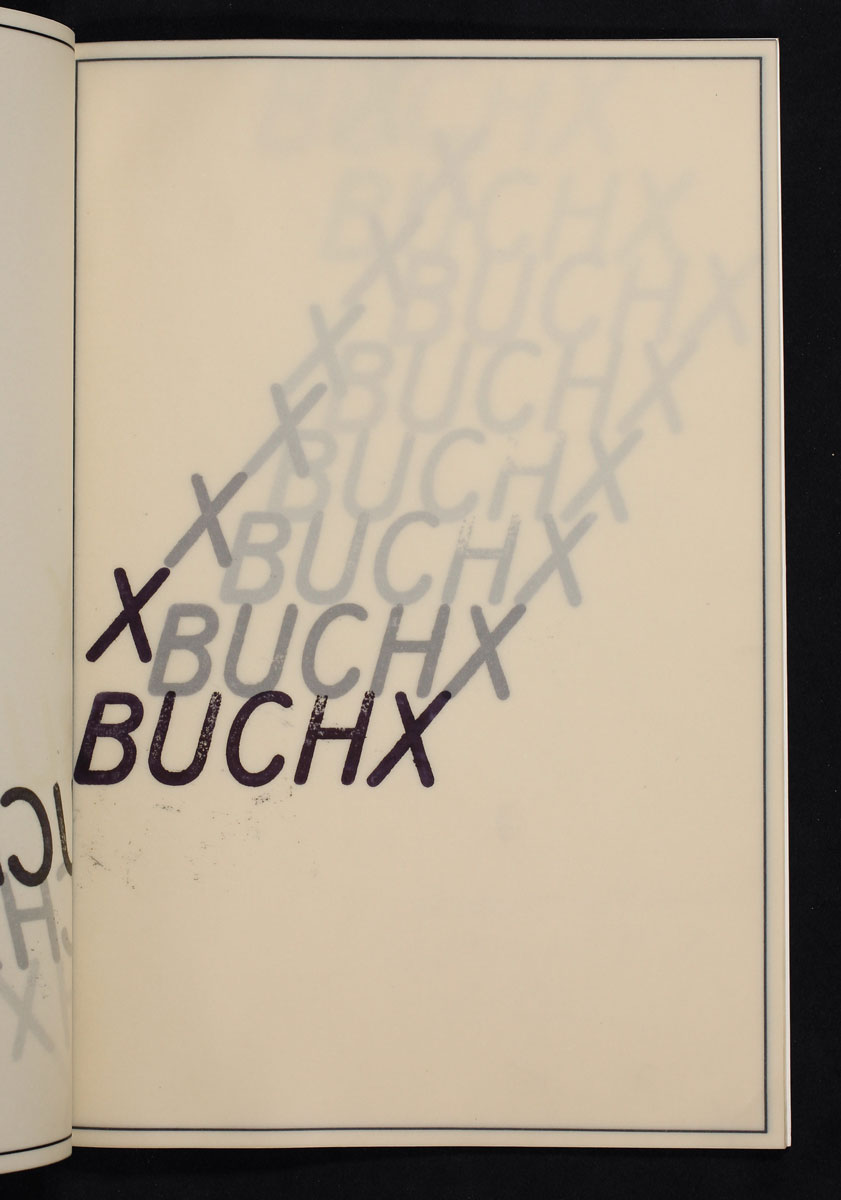 This artistic project forms a very special relationship between visual and language art. The images of books include concrete poetry, so the literal and pictorial, the spatial and typographical characteristics form one unity.