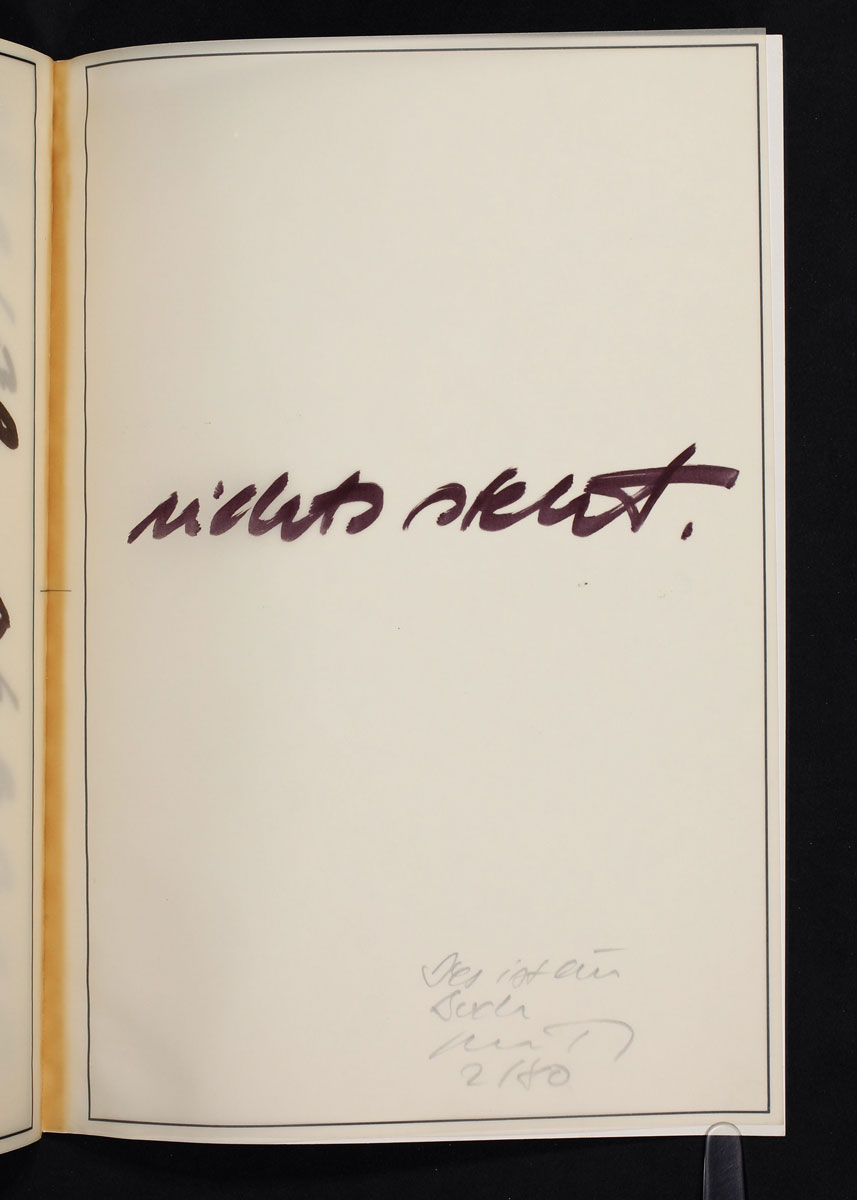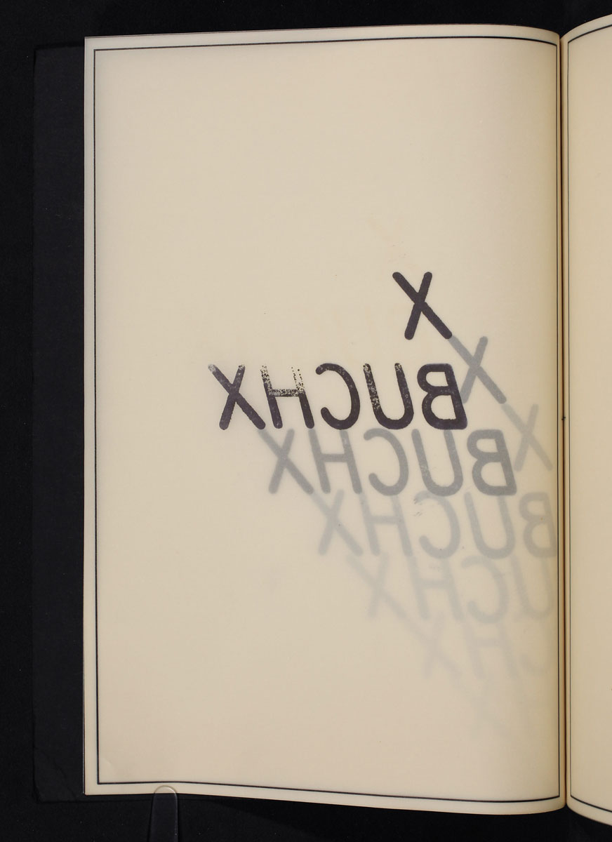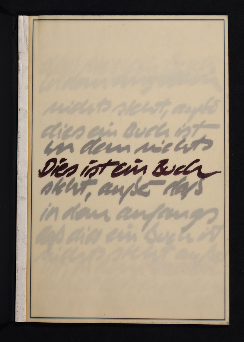 The relationship between visual and language art increasingly acquainted me with word-plays and linguistic science and terms. This way a book becomes sculpture and idea — a word gets new sense and directions There are no pages to be turned but words to be newly thought about. Perhaps you are on the way into the internal space of a book, perhaps you come to your own book this way.